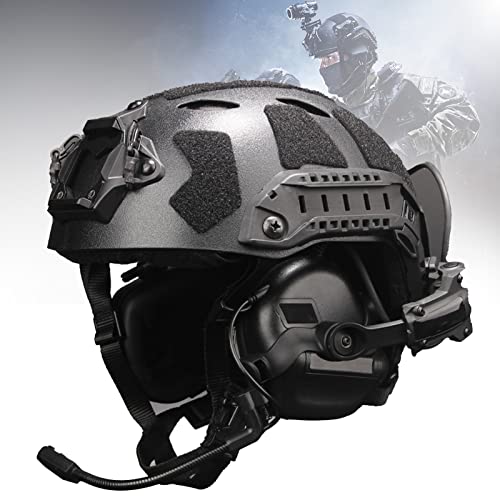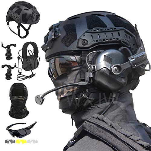 FAST SF Full Protection Taktisk Hjälm Set, Med Airsoft Headset & Tre linser Goggle & Tactical Mask, för Paintball Wargame Military Set,Black