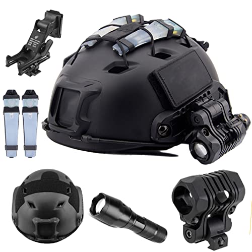 Airsoft Fast Helmet Set, Tactical Goggles HjäLm Ljussignalljus Taktisk Ficklampa Och HåLlare Mount Night Vision Goggle (Nvg) Mount Pvs7/14,Bk,6 Set