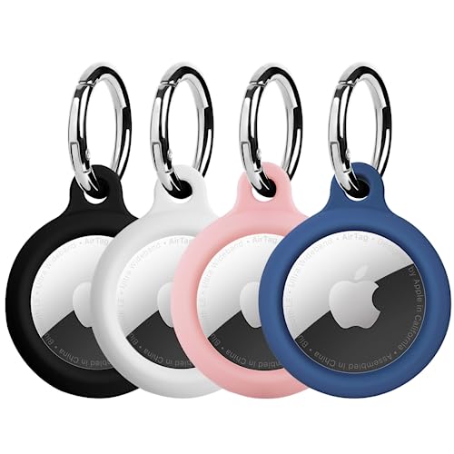 JETech Silikon Fodral för AirTag 2021 med Nyckelring, Skyddande Skal Air Tag Bärbar Case, Lätt Installation, 4-Pack (Svart/Vit/Marinblå/Röd)