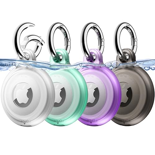 iFalarila Vattentätt fodral med nyckelring för AirTag – stötsäkert, repbeständigt TPU-skyddsfodral med framsida, heltäckande skyddshänge, fodral, tillbehör för Apple Air Tag – 4-pack