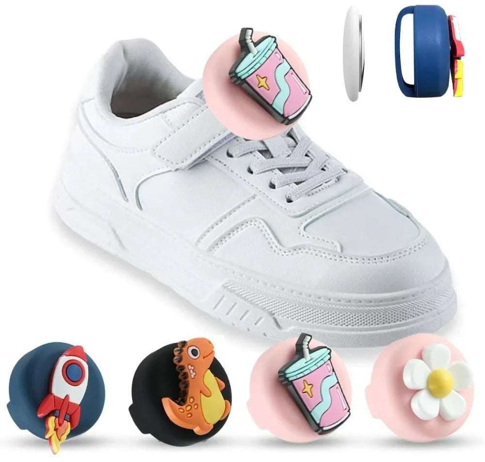 Idoove för Airtag-hållare för barn, dold 4-pack GPS-spårare, anti-borttagning för Airtag-silikonfodral med stift, lämplig för barn, äldre, husdjur, ryggsäck, bagage (blå, vit, svart, rosa)