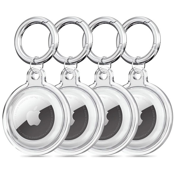 Biuupa 4-pack Airtag-hållare med nyckelring – stötsäker, reptålig TPU-skyddsfodral med transparent främre skydd och nyckelring, fodral för bagage, husdjurskrage, hundar, tillbehör för Apple Air Tag.