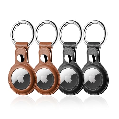 LETREEN 4-pack kompatibel med Apple Air-Tag hänge, läderfodral med nyckelring (svart/brun)