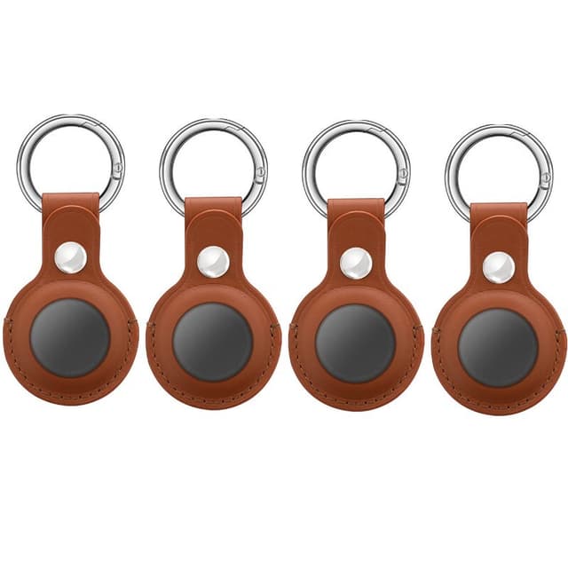 AirTag fodral med nyckelring PU-läder 4-pack Brun