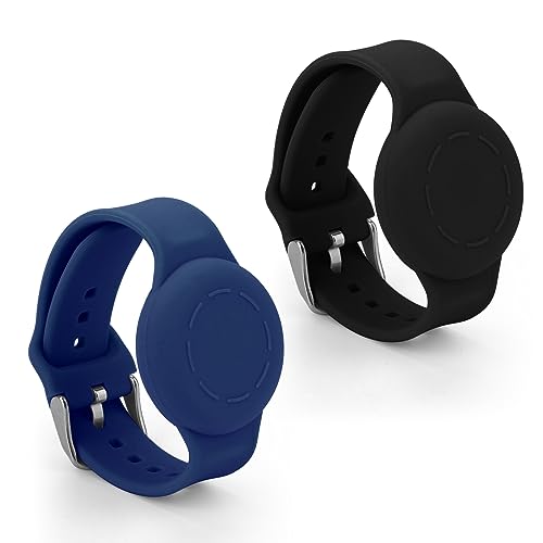 2st Barnarmband för Airtag, Vattentätt Silikonarmband för Barn Justerbart Mjukt Klockband för Airtag för Småbarn GPS-Spårningsmärkning (Svart, Mörkblå)