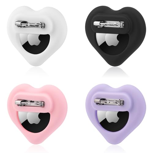 4-Pack för Apple Airtag Hållare för Barn Gömd, Hjärtformad GPS-Spårfodral med Stift Silikonskydd Kompatibel med AirTag Barn Äldre Kläder Ryggsäck Bagage (4 Färger)