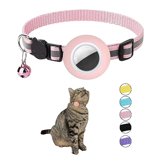 Hepplly reflekterande Airtag katthalsband med klocka och Airtag hållare, kompatibel med Airtag, katthalsband med ömtåligt säkerhetsspänne för kattungar, katter (ljusrosa)