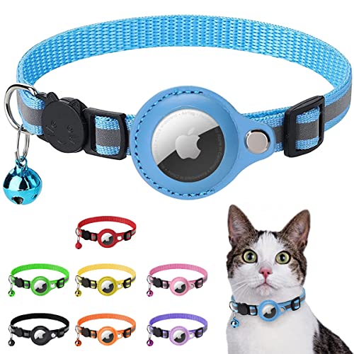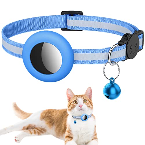 LZXLXS Airtag katthalsband breakaway, reflekterande katthalsband med Apple Air tag hållare och klocka för flickor pojkar katter, blå
