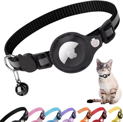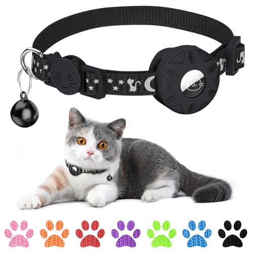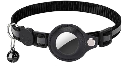 Simket Airtag Katthalsband Breakaway, katthalsband för AirTag, reflekterande kattunge-krage med klocka och Apple Air Tag-hållare för flicka pojke katter, 0,4 tum bred och lätt (svart)