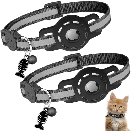 Diyife Airtag katthalsband, [2-pack] reflekterande, lätta GPS spårningshalsband för katter med Airtag fodral, spänne med snabblås, klockor, 20–33 cm, justerbar för katter, kattungar, svart