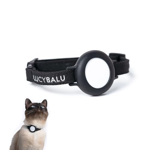 LucyBalu® Premium AirTag katthalsband | Rivsäkert nylonhalsband för AirTag | AirTag halsband för katter | Kattspårare | Apple AirTag-kompatibel | Storleksjusterbar nylonrem | Svart