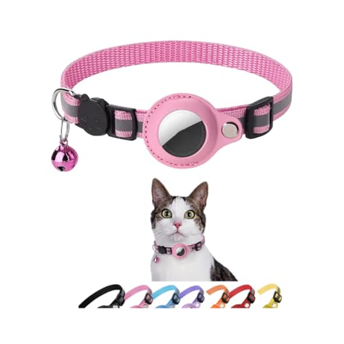 AgoumLux Airtag katthalsband AirTag halsband katt reflekterande med säkerhetslås klocka katthalsband med Airtag fodral justerbart för katter, rosa, S (23–33 cm)