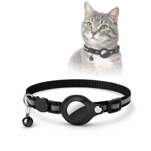 LZXLXS Airtag katthalsband breakaway, reflekterande katthalsband med Apple Air tag hållare och klocka för flickor pojkar katter, svart