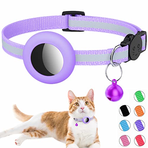 AgoumLux Airtag katthalsband AirTag halsband katt reflekterande med säkerhetslås klocka katthalsband med Airtag fodral justerbart för katter, violett, S (23–33 cm)