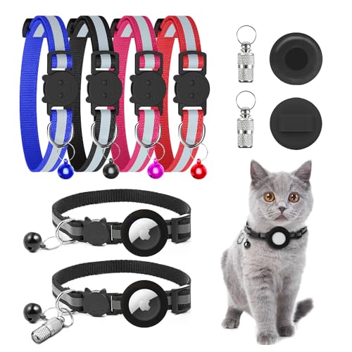 Airtag katthalsband Katthalsband Breakaway reflekterande katthalsband med klockor (4 färger & 2 paket Apple Airtag katthalsbandshållare & 2 ID-taggar)