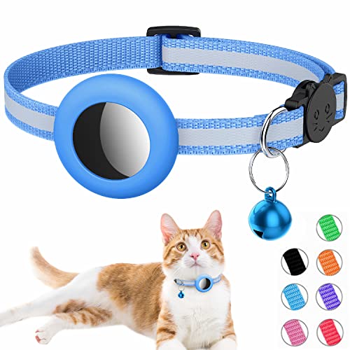 AgoumLux Airtag katthalsband AirTag halsband katt reflekterande med säkerhetslås klocka katthalsband med Airtag fodral justerbart för katter, blå, XS (17,5–23 cm)