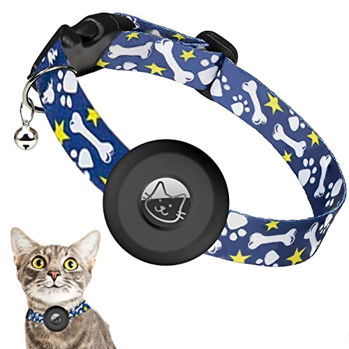 PKQTOP Airtag katthalsband, justerbart tryckt Airtag katthalsband med klocka, silikonskyddsfodral kompatibelt med Apple Airtag, Breakaway säkerhetsspänne halsband för kattungar valpar