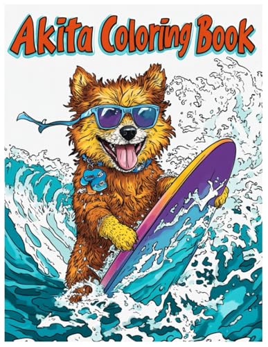 Akita Dog Coloring Book: Akita Surfing on Beach Scenes, Relaxing Stress Relief Animal Art