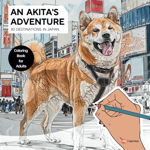 An Akita's Adventure: 30 Destinations in Japan: A Stress-Relief Coloring Book for Dog Lovers