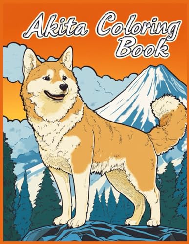 Akita Dog Coloring Book: Scenic Mountain Backgrounds, Stress Relief Art Activity, Dog Breed Lover Gift