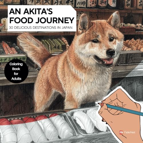 AN AKITA's Food Journey: 30 Delicious Destinations in Japan: A Stress-Relief Coloring Book for Dog Lovers