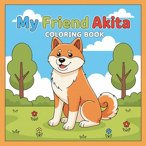 Akita Coloring Book for Kids Ages 4-6: Cute Dog Coloring Pages with 40 Fun and Easy Designs: A Fun Preschool and Kindergarten Dog Coloring Book for ... Puppy Illustrations with Captions to Color
