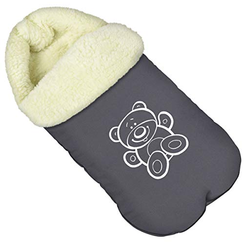 Baby åkpåse vinterpåse för barnvagn ull mått 85 cm för buggy nallebjörn grafit [071]