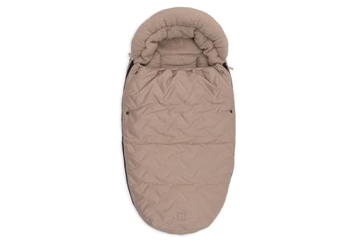 Jollein åkpåse präglad – mjölkig kaffe – för barnstol, bilstol, grupp 0+ och barnvagn – för 3-punkts och 5-punktsbälte – präglad design och fleecefoder