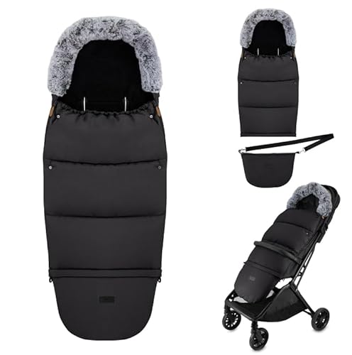 ZONSUSE Åkpåse för Barnvagn med Huva och Dragsko - Vinter Baby för Buggy, Avtagbar och Maskintvättssäker med Dragkedja, Svart 1, Modern