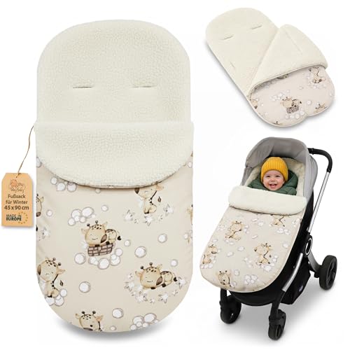 Åkpåse Barnvagn och Buggy för Vinter 90x45 cm - Vinteråkpåse Varm Insats Omslagsfilt Baby Tillbehör varm Boucle Oeko-Tex certifikat Giraffmönster