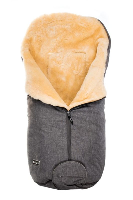 Bozz åkpåse lammskinn, grå melange/natur korthårig