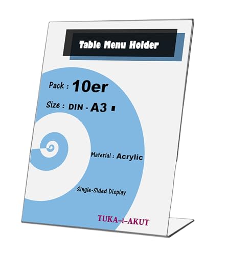 TUKA 10X lutande skrivbordsvarningshållare, A3 Vertikal Display Stand Advertising Support, för meny, papper, information, dokument och mer. 3 mm klar akryl, TKD8200-A3-10x
