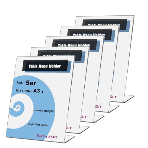 TUKA 5X lutande skrivbordsvarningshållare, A3 Vertikal Display Stand Advertising Support, för meny, papper, information, dokument och mer. 3 mm klar akryl, TKD8200-A3-5x