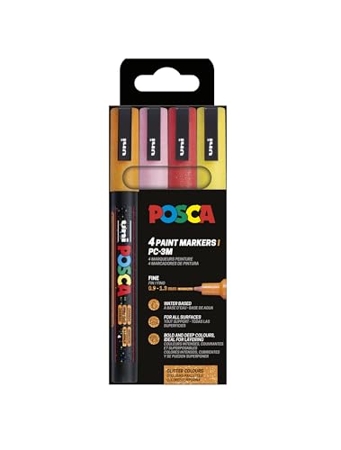 POSCA 186531 POSCA-märkpennor – 4 x PC-3M akryl glitterpennor permanenta markörer – 0,9–1,3 mm rund spets