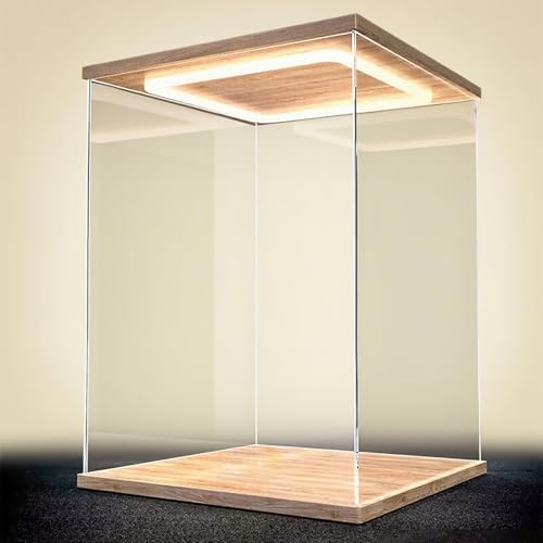 Akryl Vitrinskåp Stor, Transparent Vitrinskåp med LED-belysning, Hög, Transparent, Akryl Display Box för Figurer och Plysch, Staplbar Bordslåda (15 x 15 x 15 cm (6 x 6 x 6 tum))