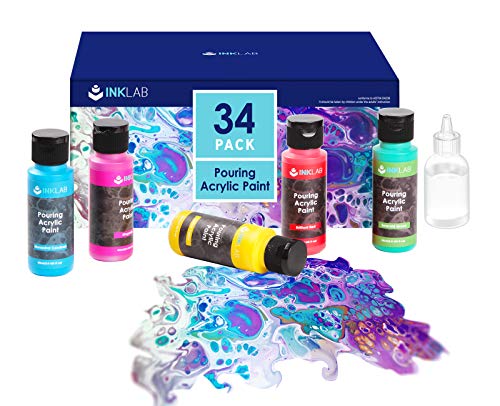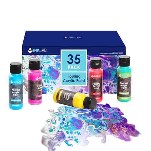 INK LAB Akryl hällfärg kit 35 färger förblandad akrylfärg högt flöde med silikonolja för hällning på duk trä hantverk stenar, vattenbaserade, 56,7 g/flaska