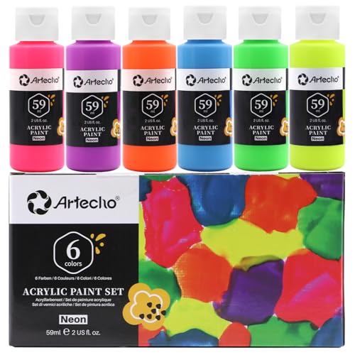 Artecho Akryl färgset – 6 neonfärger, 57 g vardera, för konst, trä, tyg, hantverk, duk, läder och sten
