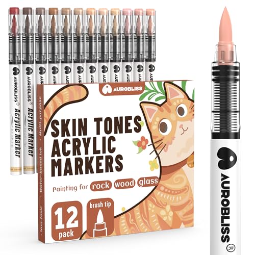 Akrylpenna hudfärg borste, 12 färger filtmålning akryl penselpenna, stenmålning, glas, trä, keramik, tyg akrylfilt mjuk spets (Hudton)