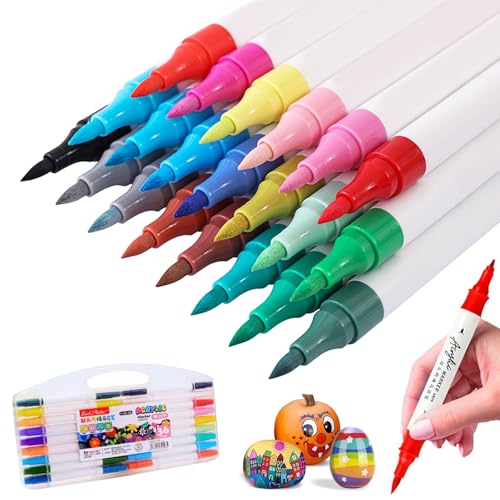 STATIONERY ISLAND Akryl färgpennor 36 färger färgmarkörer dubbla spetsar akrylmarkörer för rock målning stenglas keramik trä metall tyg fin & penselspets vattenbaserade akrylpennor