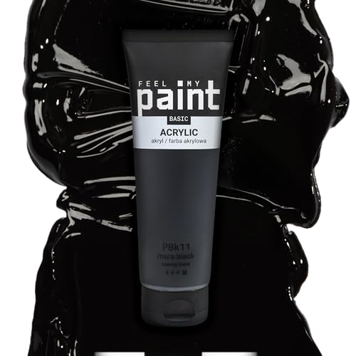 FeelMyPaint Akrylfärg svart (Mars Black), PBk11, 120 ml, högpigmenterad färg för målning på duk, papper, tyg, trä, glas, keramik, metall och sten