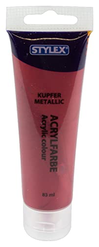 Stylex 28768 28768-akrylfärg tub, matt vattenbaserad färgfärg för målning och pyssel, lämplig för många ytor, högpigmenterad och vattentät, metallisk koppar, 83 ml