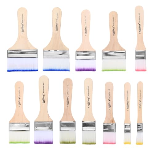 Förpackning med 12 breda platta penslar i akryl, akvarellpensel akrylfärg, konstnärspensel, oljefärger, penselset med trähandtag, målarborstar set för oljemålning, målning, akrylmålning, penselset, 12
