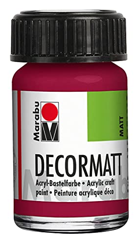 Marabu 14010039004 – dekorativ matta akryl granatröd 004, 15 ml, sammetsmatta akrylfärg på vattenbas, krämig och färgintensiv, salivsäker, väderbeständig, för fri målning och stencilering