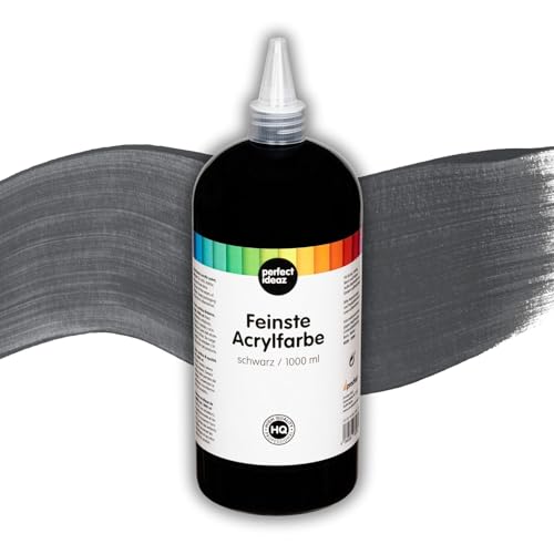 perfekt ideaz 1000 ml vit akrylfärg, acrylic paint högtäckande, kreativ målarfärg i svart, perfekt för att blanda färger, tillbehör för målning och teckning, för akrylmålning av hög kvalitet