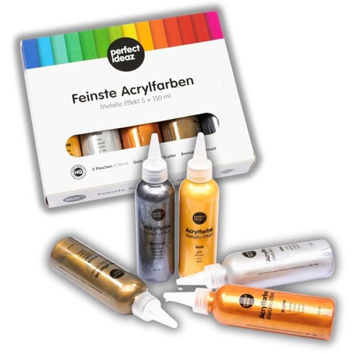 perfect ideaz 5 st. 150 ml akrylfärg metallic (750 ml), 5 olika färger, hög färgpigmenthalt, Acrylic Paint högtäckande och snabbtorkande, perfekt för målning och teckning