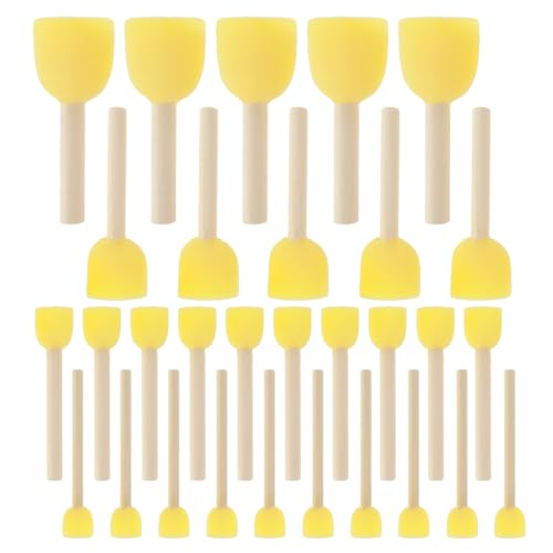 30 stycken målningssvampstämplar, runda svampborstar för målning, set, trähandtag, skumborste, svampborstar, färgsvamp för akrylfärg, barnklott, akvarell, konst och pysselbehov (4 storlekar)