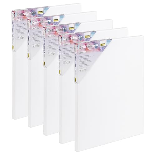 Idena 90953 – målning på kilram med vit duk av 100% bomull, 5 stycken ca 30 x 40 cm, gramvikt 380 g/m², för oljefärger och akrylfärg