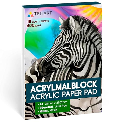 TRITART Teckningsbok för akrylfärg 400 g/m² - A4 - block med 18 ark för akryl - ritpapper för målning - ritningsbok