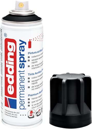 edding 5200 permanent spray – svart matta – 200 ml – akrylfärg för målning och dekoration av glas, metall, trä, keramik, plast, duk – aerosolspray, akrylspray, färgspray