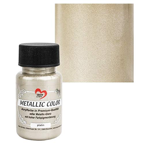 Ideen mit Herz Metallic Color | Metallisk färg | högkvalitativ akrylfärg i premiumkvalitet med ädel metallisk glans och hög färgpigmentering | 50 ml (platina)
